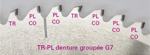 Lame de scie type G7 : « la lame de scie à denture positive-négative » La lame de scie de qualité pour l’usinage de matériaux à base de fibre de verre ou fibres minérales.